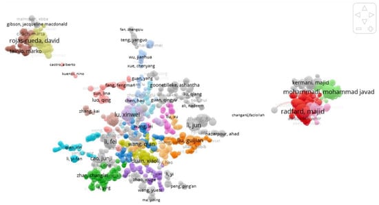 The cooperation between authors is shown in Figure 6. In the main author cooperation network, the authors who play a key role include Mohammadi M J, Radfard M, Rojas-rueda D, Lu XW, Liu G, Wang Q, Li J, etc.