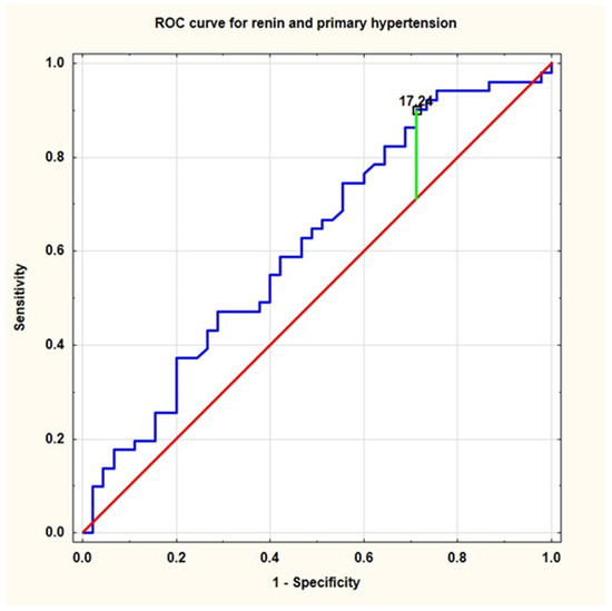 Receiver operating characteristic (ROC) curve for active renin concentration and the presence of primary hypertension (ROC—receiver operating characteristics).