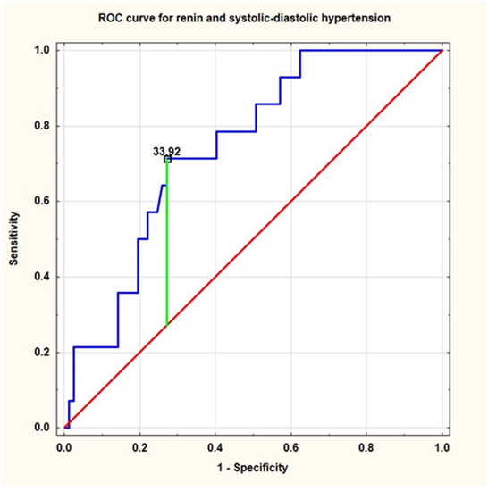 Receiver operating characteristic (ROC) curve for active renin concentration and the presence of systolic-diastolic hypertension (ROC—receiver operating characteristics).