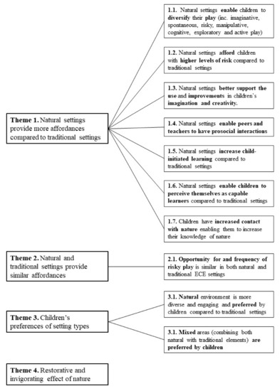 - Lerstrup, I.; Konijnendijk van den Bosch, C. Affordances of outdoor settings for children in preschool: Revisiting heft’s functional taxonomy. Landsc. Res. 2017, 42, 47–62. [Google Scholar] [CrossRef]