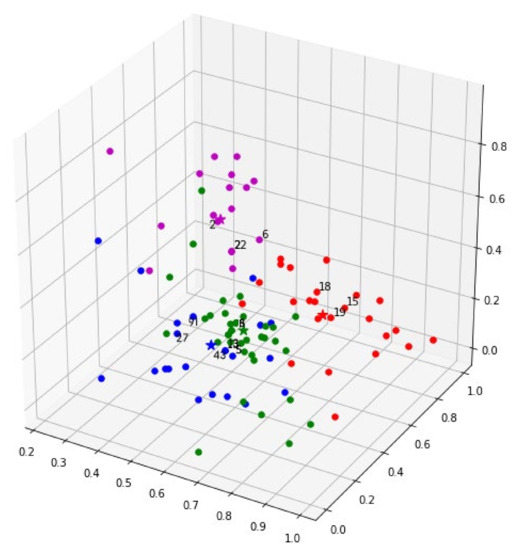 Step 5: based on the scoring data, all samples are classified using FCM and the three schemes closest to the center point in each cluster are taken as the representative samples of this cluster.