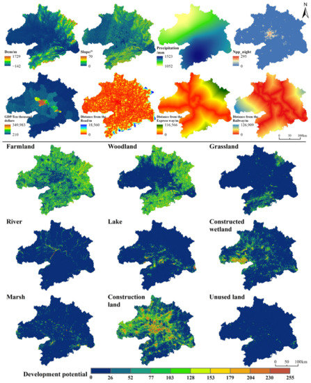 Driving factors for calculating the different land-use probabilities of occurrence in 2020.