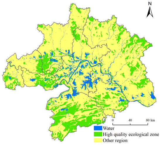 Areas of high ecological quality are considered critical areas for protecting ecosystem stability and biodiversity. However, this study mainly considers natural environmental factors identified by remote sensing identification. The maintenance of ecological security should rely on a comprehensive suite of information sources. In previous studies, existing natural protected areas, rivers, and reservoirs were designated as restricted areas in simulations of urban expansion [39,40]. The identified HEQZ in this study can guide land-use simulations under various scenarios. High-quality ecological zones can be used for ecological planning, regional ecological protection zone designation, and urban growth boundary delineation.