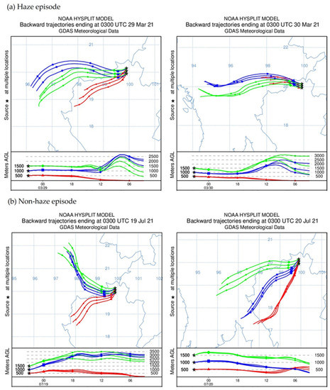 Backward trajectories result for PM2.5 monitoring in haze episode and non-haze episode.