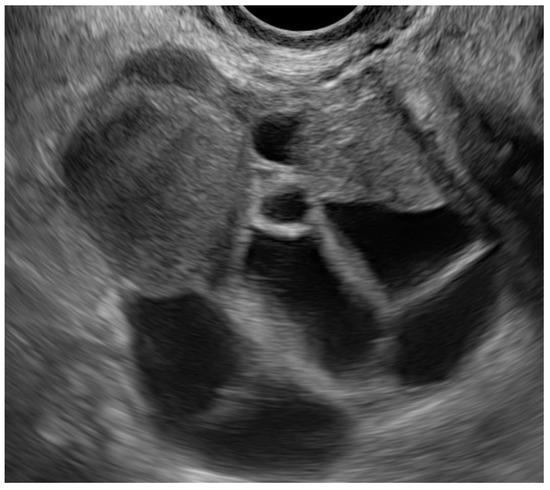 - Guerriero, S.; Condous, G.; van den Bosch, T.; Valentin, L.; Leone, F.P.G.; Van Schoubroeck, D.; Exacoustos, C.; Installé, A.J.F.; Martins, W.P.; Abrao, M.S.; et al. Systematic approach to sonographic evaluation of the pelvis in women with suspected endometriosis, including terms, definitions and measurements: A consensus opinion from the International Deep Endometriosis Analysis (IDEA) group. Ultrasound Obstet. Gynecol. 2016, 48, 318–332. [Google Scholar] [CrossRef] [PubMed]