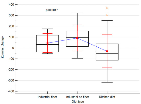 Statistical analyses were carried out in StatView version 5.0 (SAS Institute Inc., Cary, NC, USA) and Statistica 13.1 (StatSoft, Kraków, Poland). The results were considered statistically significant at p < 0.05. Continuous variables distribution was tested for normality using the Shapiro–Wilk test. Quantitative data were presented as means ± SD, whereas for qualitative data, numbers and percentages were used. To assess the effects of the respective diets on the concentrations of zonulin, calprotectin, and prealbumin, the Kruskal–Wallis test was used. Additionally, to check whether other factors (the use of antibiotics, probiotics, or proton pump inhibitors) had an effect on zonulin, calprotectin, and prealbumin levels, the analysis of covariance (ANCOVA) was applied. For post hoc analyses the Conover test was adopted.