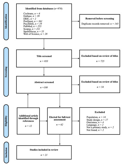 This systematic review was carried out by using the protocol developed by Cochrane Institute [39] and following the checklist of the Preferred Reporting Items for Systematic Reviews and Meta-analysis (PRISMA) guidelines [40]. The aim of this systematic review was to identify whether there are evidence-based methods to optimise the development of aquatic literacy in young children.