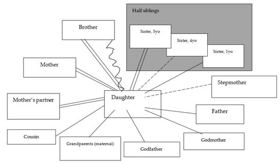 Both children include their parents’ current partners among the people they are close to, which shows that they have adapted to a certain degree to the situation after the divorce and to the reconstituted relationships of their mother and father. On the one hand, they do not consider their parent’s new partners as people with whom they remain in very good relationships—they keep their distance (stepmother—girl) or remain in a quiet conflict (mother’s partner—boy). On the other hand, they became emotionally attached to the parents’ partners with whom they live—the girl to her mother’s partner and the boy to his father’s wife. The relationship of the biological siblings is complex and perceived differently by the girl who misses her brother and the boy who, in his opinion, has a good relationship with her sister but minimizes the importance of contact with her in favor of peer relationships. The difference in the assessment and the need to maintain the brother–sister bond can be explained by the age of the children and different needs resulting from the development phases, but also by their current situation—she has become the only child in the family where she is growing up, while he lives in a home where four children younger than him are brought up.