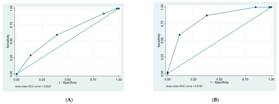 (A) Receiver operating curve: Clinical frailty scale and poor outcome. (B) Receiver operating curve: Clinical frailty scale and permanent nursing home admission.