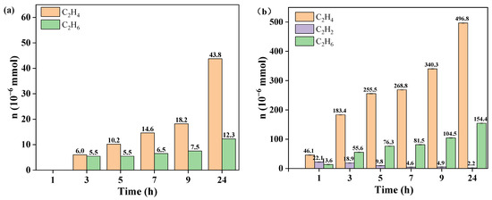 The concentration of H2 was measured by a gas chromatograph (FULI-9790, Taizhou, China) equipped with a thermal conductive detector (TCD). A TXD-01 packed column (3 mm × 2 m, Lanzhou Institute of Chemical Physics, Chinese Academy of Sciences, Lanzhou, China) was used, with Ar as the carrier gas. The inlet temperature was 140 °C, the column oven was 60 °C, the detector temperature was 140 °C, and the injection volume was 100 µL. Since H2 solubility in water is negligible, H2 in the reaction-vial headspace was the total H2 produced during the reaction.