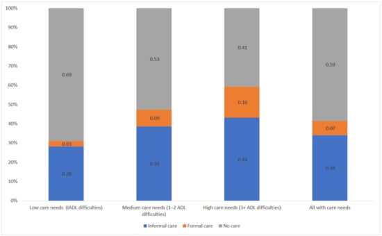 Predicted probability of receiving informal or formal care by levels of care need.
