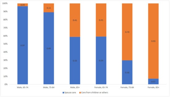 - Pickard, L.; Wittenberg, R.; Comas-Herrera, A.; King, D.; Malley, J. Care by Spouses, Care by Children: Projections of Informal Care for Older People in England to 2031. Soc. Policy Soc. 2007, 6, 353–366. [Google Scholar] [CrossRef]