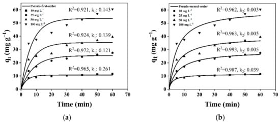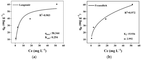 2.4.5. Adsorption Isotherms and Kinetics Analysis
