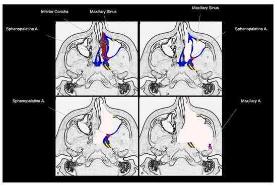 40. Erdogan, N.; Unur, E.; Baykara, M. CT anatomy of pterygopalatine fossa and its communications: A pictorial review. Comput. Med. Imaging Graph. 2003, 27, 481–487. [Google Scholar] [CrossRef]
