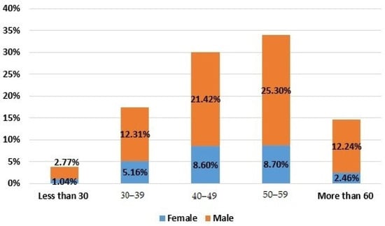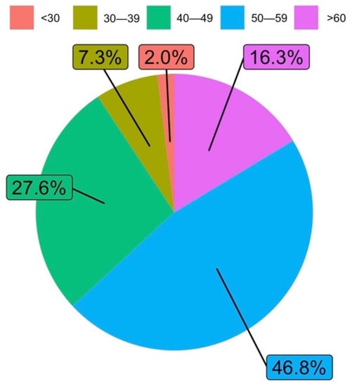 The largest age group that responded to the survey was between 50 and 59 years old (46.8%), followed by those aged 40 to 49 years old (27.6%), and then those over 60 years old (16.3%). Figure 3 shows in detail the answers according to the different age groups.