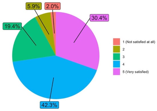 The answers obtained are particularly relevant in relation to the degree of satisfaction with the work carried out as a teacher during the lockdown period (Q8), where 72.7% were “Satisfied” or “Very satisfied”. Figure 7 shows the answers to this question.
