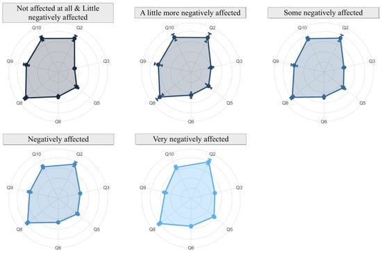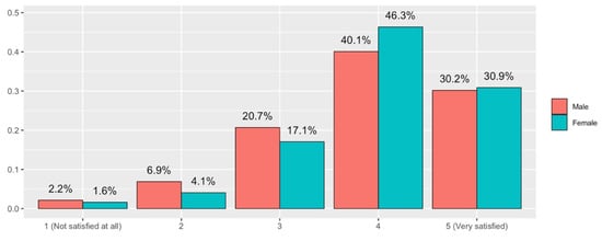 Regarding the degree of satisfaction of the teaching staff with the learning achieved by students (Q10), the highest scores were “Satisfied” and “Neither satisfied nor dissatisfied”, which were in the order of 70%. A comment should be made on why there were so few (14.1%) “Very satisfied” answers. The situation of lockdown has meant that the assessment has not taken place in appropriate conditions; evaluation criteria have changed and the conditions for carrying out many tests mean that the results obtained from the evaluations, although positive, leave some doubts. See Figure 9.