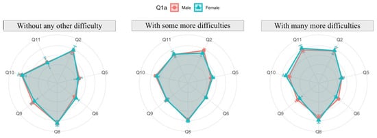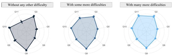 - Q3 (Without any other difficulty ↔ 1, With some more difficulties ↔ 2, With many more difficulties ↔ 3)