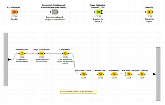 A description of the data editing workflow in the KNIME software to identify the main areas discussed (Source: KNIME Analytics Platform, Topic Detection Analysis).