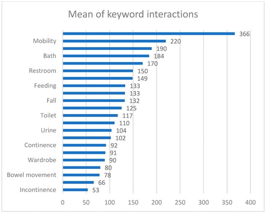 Third, an engagement of the group members in individual ADLs with descriptive statistics was calculated (see Table 9). Fourth, an analysis of variance (ANOVA) was used to identify significant differences in the frequency of communication about ADLs as well as among the most common keywords (see Table 10 and Figure 2). Fifth, the topics detected through machine learning were re-examined and re-verified by both authors. The most common behavior or communication patterns representing caregiver problems were assigned to each discussion topic detected (see Tables 3–8). Sixth, a detailed analysis of the identified typical problems and situations enabled to find basic recurring causal links (Table 11).