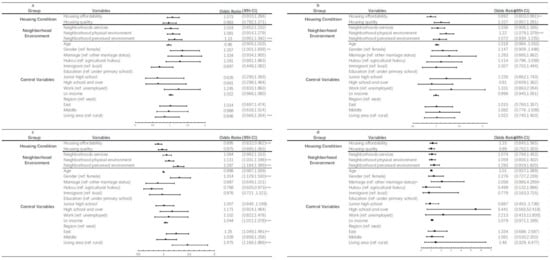 | Neighborhood physical environment | 1.100 *** (1.041, 1.164) | 0.001 | 1.131 *** (1.068, 1.199) | 0.000 |