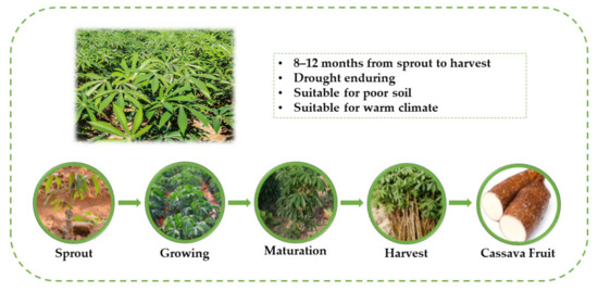 - Howeler, R.H. Cassava: Biology, Production and Utilization; CABI: Bangkok, Thailand, 2002; pp. 115–148. Available online: https://www.cabi.org/cabebooks/ebook/20073012660 (accessed on 18 April 2022).