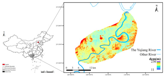 Overview of the cassava planting area of the Yujiang River Basin.