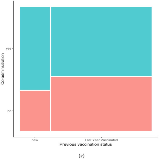 A remarkable aspect is that the flu/COVID-19 vaccine coadministration was more prevalent among the newly vaccinated group. Although this observation came from an explorative analysis (mosaic plot), we believe it may deserve some considerations. Indeed, it can be speculated that the contemporary offer of the two vaccines might act as a facilitator towards the flu vaccine uptake for HCWs who accessed the vaccination service this time but did not get the flu vaccine in the 2020–2021 season. In other words, the possibility of coadministration might have been successful in also reaching those HCWs who were otherwise hesitant towards the flu vaccine alone. Similarly, an encouraging acceptance of the flu and the COVID-19 co-vaccination in the 2021–2022 campaign was also observed, though results are preliminary, by other Italian authors [56].