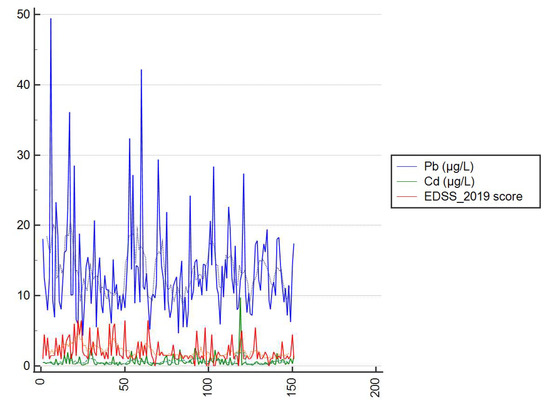 The largest limitation of the study is the lack of a control group of healthy subjects; however, our main goal was to search for a relationship between the levels of heavy metals (lead and cadmium) and the variables characterizing MS patients. Moreover, it would be worth tracking changes in the levels of lead and cadmium in the course of MS, especially when observing changes in the functional status of patients.