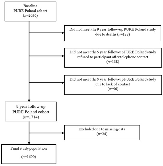 Flow chart of the Pure Poland study participants (n = 2036) and the final study population (n = 1690).