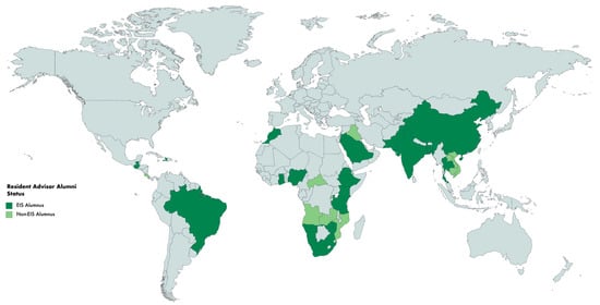 Figure 1). All but five states have had either a state or territorial epidemiologist or a CEFO who was an EIS alumnus during the evaluation period. FETP resident advisors have served in a total of 29 countries and three regional positions comprising more than one country during the evaluation period. FETP resident advisors who were EIS alumni have served in 19 countries (66% of countries that have resident advisors), and one regional position (