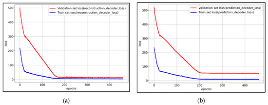 (a) Reconstruction decoder loss graph of the proposed transfer learning model; (b) Prediction decoder loss graph of the proposed transfer learning model.
