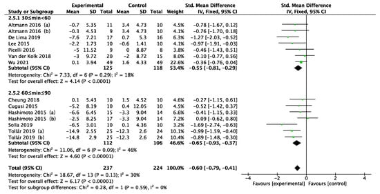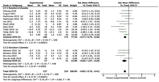Subgroup analysis of intervention period [,,,,,,,,,,].