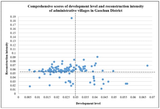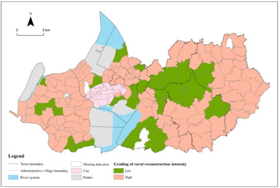 3.1.2. Analysis of Reconstruction Intensity of Villages in Gaochun District