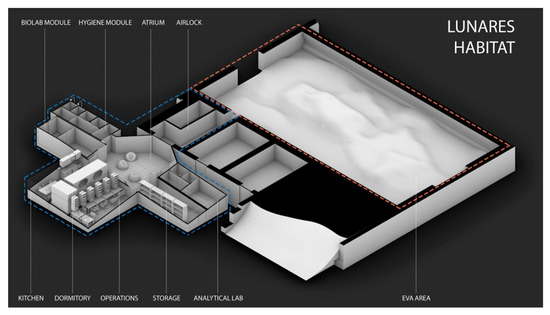LunAres Research Station is located at the post-military airport in Piła, Poland. The facility provides complete isolation of analog base/living module and a very large Extravehicular Activity area (250 m2) from the external environment. The capacity of the base allows for organizing 2-week missions for crews of six people maximum. The behavior and health parameters of the AA are constantly monitored thanks to the stations’ infrastructure (Figure 2).