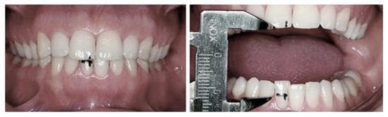 In order to assess the stress-related increase in neuromuscular tension, maximal mandibular abduction measurements were made [9] with the use of an electronic caliper (mm), which was placed between the central incisors of the maxilla and mandible (Figure 4).