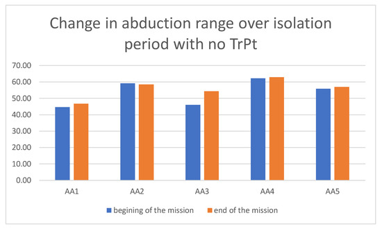 Change in maximal mandibular abduction range over isolation period in AA group with no TrPt (control group).