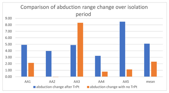 In comparison of the abduction range for both groups, the test group had an overall greater increase (Figure 7).