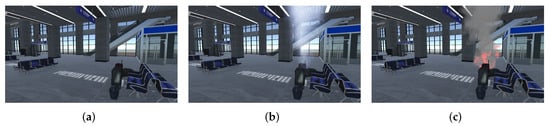 The confrontation with fire usually induces complicated psychological responses [21]. For convenience of expression in this paper, the term ‘panic’, as in a general sense, is hereby and thereafter adopted to describe these responses, although the precise definition of ‘panic’ may be ambiguous [22]. The complex nature of human psychology brings uncertainty and unpredictability to fire evacuations. Many researches have so far been dedicated to this issue. Multiple studies have integrated the impact of panic into pedestrian simulation models with panic parameters [23,24,25,26]. However, a deeper understanding of the mechanism of panic is in many cases lacking, due to insufficiency with empirical or experimental data concerning panic during evacuation. Psychological surveys were conducted in some studies as a method to understand panic [27,28,29], but not many of them were further validated by metrics of more objectivity and quantitativeness. Physiology could function as such metrics, as psychological responses are often manifested in the form of physiological signals [30,31]. Hence, it is of particular interest to find out the way the physiological signals evolve under various circumstances of fire. For reasons of safety and convenience, a simulated fire could be utilised instead of a real one. The validity of virtual simulations has been scrutinised by numerous researchers, and many conclude that the experiences in virtual and real environments are comparable [32,33,34]. This study aims to dig into the mechanism of evacuation panic by setting up an experiment that simulates fire, conducting psychological questionnaires and interviews, and further quantitatively validating them with physiological measurements.