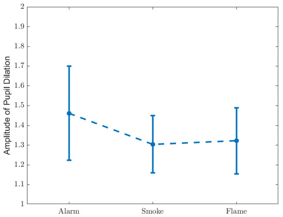 It is observed that ‘Alarm’ causes the greatest pupil dilation, whilst no significant gap is found between ‘Smoke’ and ‘Flame’, suggesting that pupil dilation is related only to unawareness of situation.