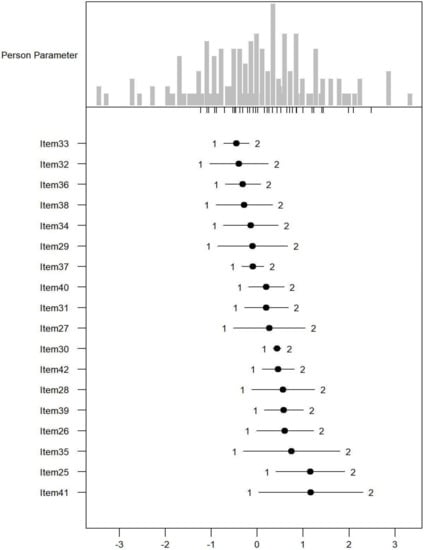 - Smith, R.M.; Schumacker, R.E.; Bush, M.J. Using item mean squares to evaluate fit to the Rasch model. J. Outcome Meas. 1998, 2, 66–78. [Google Scholar] [PubMed]