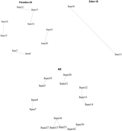 Local item dependencies above cut-off for the 24 Paradise items, the 18 additional Eden items, and the two combined.