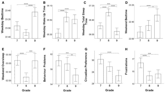 3.2. The Influence of School Grade on Sleep Patterns and Academic Stress