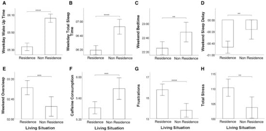 3.4. The Influence of the Living Situation on Sleep Patterns and Academic Stress
