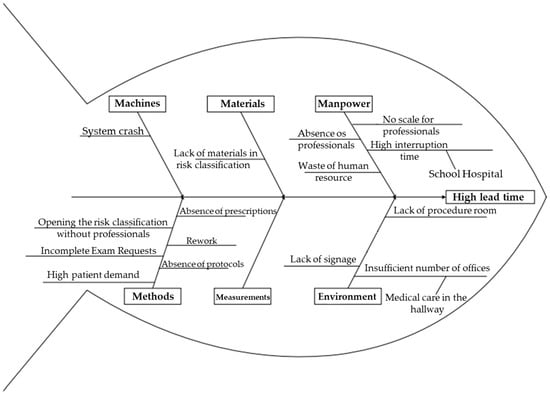 When analyzing the possible causes for this waste, with the aid of the Ishikawa Diagram, problems regarding methods and manpower were detected, considering that the nurse was providing care before the arrival of the physician. As doctors are responsible for making the decision to discharge or refer these patients to other services [22], multidisciplinary work is of paramount importance. The absence of physicians at the beginning of the shift was attributed to the lack of a work schedule for these professionals, in addition to the understaffing of the service. According to the literature, the poor distribution and insufficiency of personnel are sources of waste and entail great costs for institutions, in addition to compromising patient safety [23].