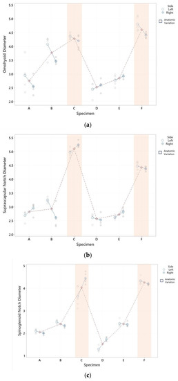 In addition, one of the subjects who presented the variation (specimen C) also presented an important tissue densification in the SNo area, which complicated the isolation of the SNe for measurement procedures. It has also been documented that scar tissue or densification at the SNo may be relevant to suprascapular neuropathy [22,23].