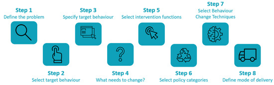 - Michie, S.; Van Stralen, M.M.; West, R. The behaviour change wheel: A new method for characterising and designing behaviour change interventions. Implement. Sci. 2011, 6, 42. [Google Scholar] [CrossRef] [PubMed] [Green Version]
