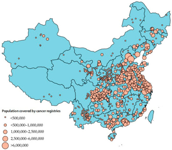 Distribution of population-based cancer registries in China (2018). Reproduced with permission from Wei W., etc., Cancer registration in China and its role in cancer prevention and control; published by The Lancet Oncology, 2020.