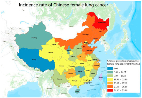 Incidence data of lung cancer in Chinese women at the provincial level.