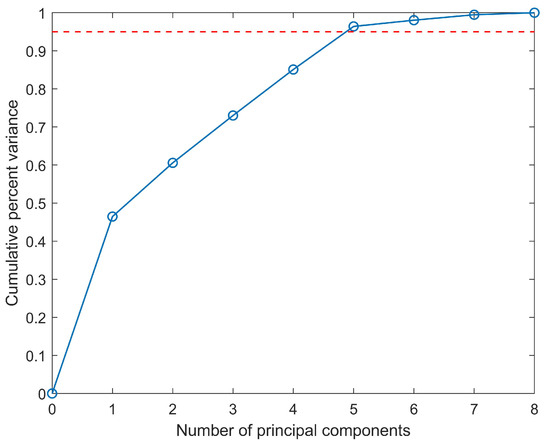 there is no residual that means that and , as shown by Equation (15). Therefore, the number of principal components and